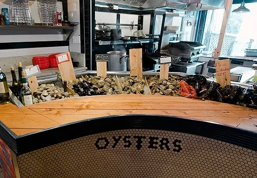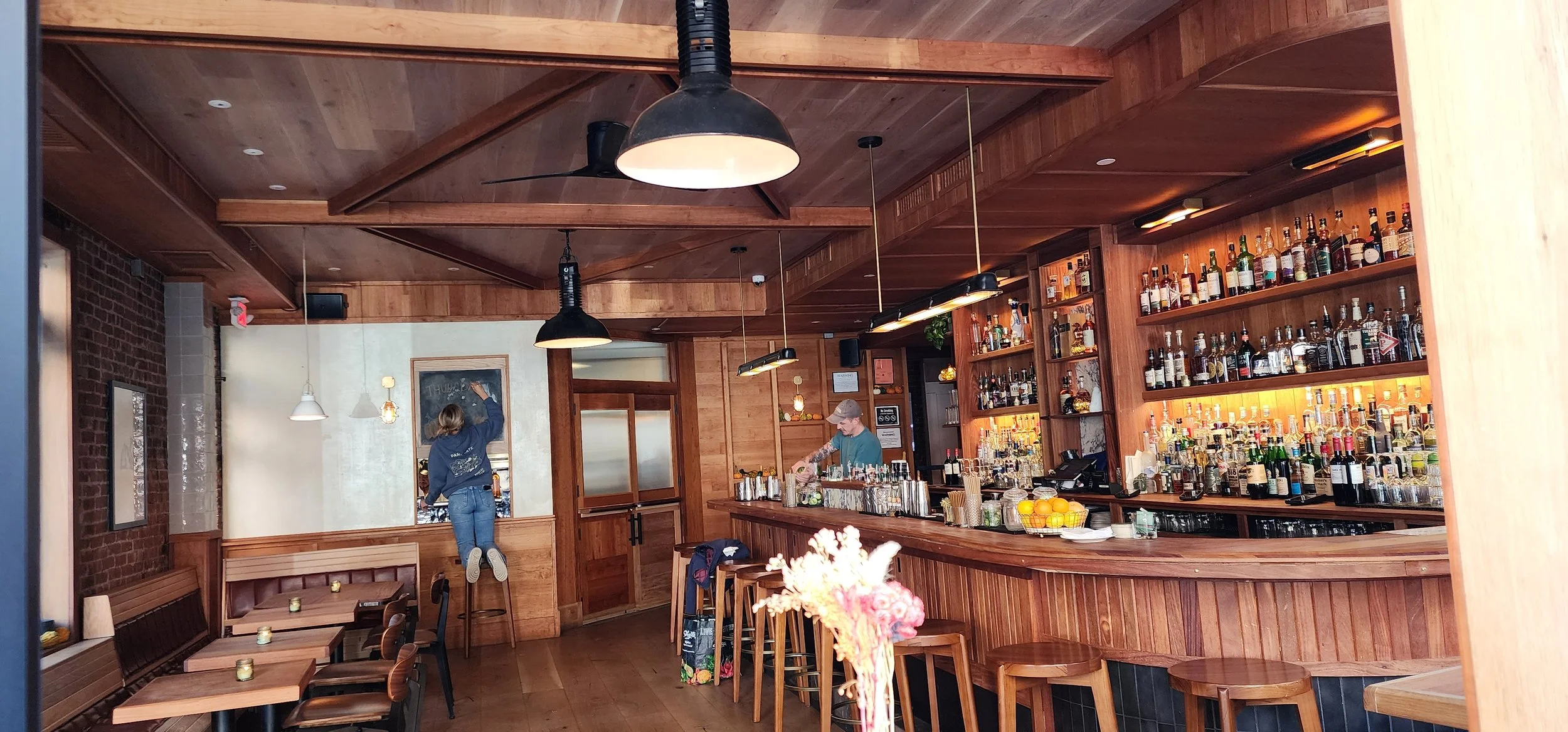 part raw bar, part hot dog stand with playful twists on fried oysters and a few other classics. This was a full gut remodel in every way. new wood paneled ceilings, commercial kitchen, HVAC, electrical, POS, vintage reclaimed colorful wainscotting and vintage French doors at the entryway.
